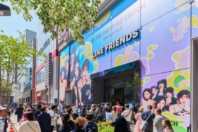 디지털 IP 엔터테인먼트 기업 IPX(구 라인프렌즈)는 3일 아이브(IVE)와 함께 두번째 EP앨범 ‘IVE SWITCH’ 발매를 기념한 팝업스토어를 라인프렌즈 스토어 강남점에 문을 열었다. 수많은 국내외 팬들의 오픈런 행렬이 이어졌다.