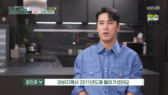 장민호는 2011년 작고하신 아버지를 떠올리며 "벌써 14주기"라고 회상했다. 그는 "음악을 할 때 아버지가 힘을 주셨는데, 트로트를 하면 좋은 모습을 보여드릴 수 있을 거라 생각했지만 앨범이 나오기 전에 돌아가셨다"며 아쉬움을 드러냈다. 이어 "매해 5월이 되면 늘 그리운 아버지"라며 눈물을 글썽였다.