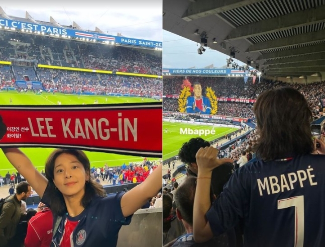 배우 설인아가 최근 프랑스 파리에서 열린 파리생제르맹(PSG)의 경기를 직관하며, 축구선수 이강인과 킬리안 음바페를 응원했습니다. 설인아는 자신의 SNS에 PSG 홈구장인 파르크 데 프랭스에서 찍은 인증샷을 공유하며, 이강인 선수의 이름이 적힌 머플러를 들고 "이강인 선수 화이팅"이라는 메시지를 전했습니다.