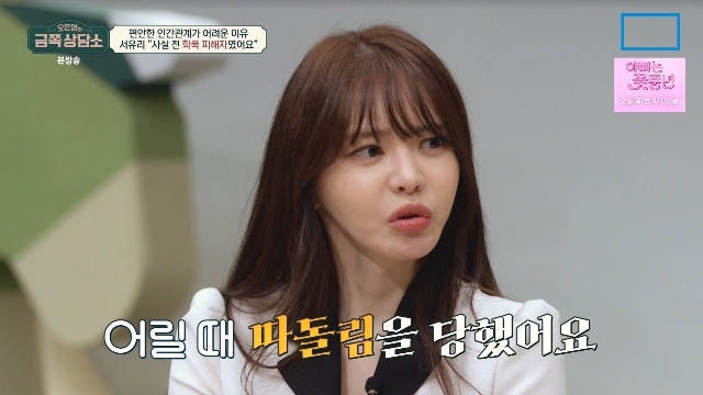 성우 겸 배우 서유리가 최근 방송된 채널A 예능 '오은영의 금쪽 상담소'에 출연해 학창시절 학교폭력 피해 사실을 고백했습니다. 서유리는 초등학교 5학년 때 한 학생과 사이가 안 좋아지면서 그 학생이 주동이 되어 괴롭힘을 당했다고 털어놓았습니다.