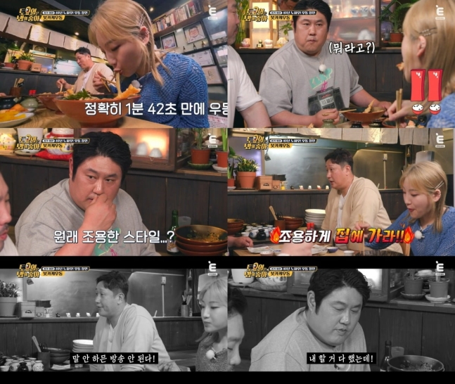 특히 히밥은 삼촌들이 한 그릇씩 시킬 때 무려 세 그릇을 주문해 모두를 깜짝 놀라게 했는데요. 1분 42초 만에 한 그릇을 비우는 엄청난 속도에 절친 최준석조차 "내 눈으로 이걸 직접 볼 줄 몰랐다"라며 놀라움을 감추지 못했습니다.